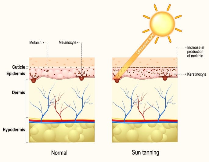 The term photo aging refers to the process of premature aging of the skin that is caused by UVA and UVB sun damage. As ultraviolet light from the sun penetrates the epidermis and dermis layers of the skin, it damages the DNA skin cells which causes melanocytes to produce excess pigment. Repeated sun exposure without proper protection will result in premature aging of the skin, as well as an increased risk of skin cancer.